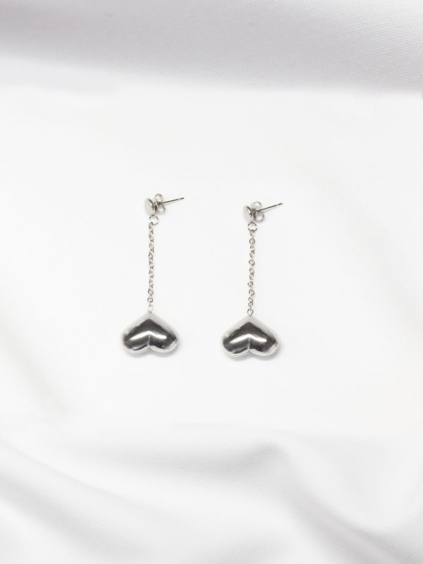 Silver heart drop earrings