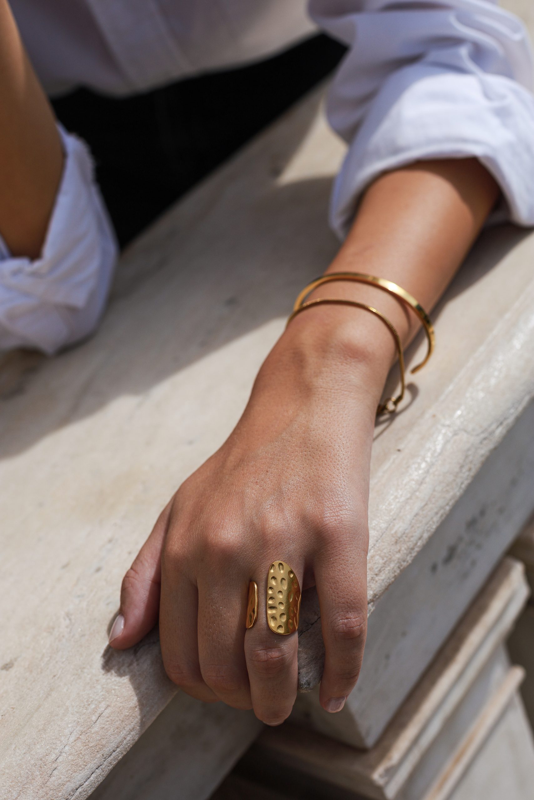 Adjustable gold vague ring