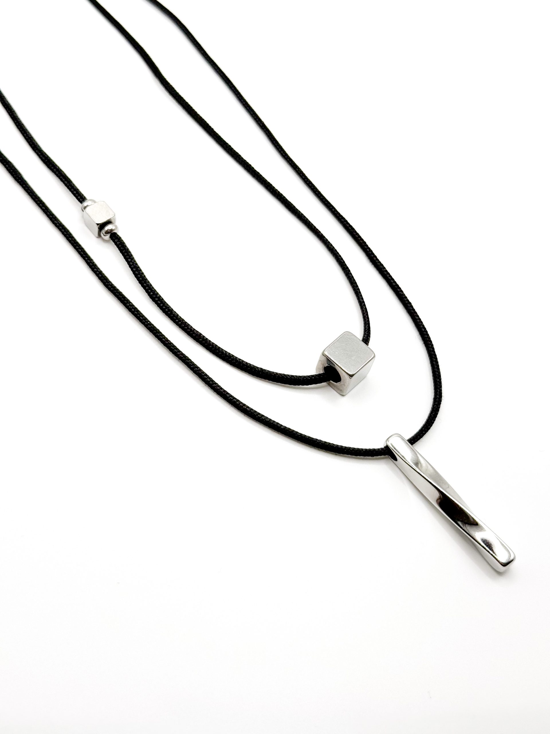 Black cord necklace cube & Black cord necklace twisted bar