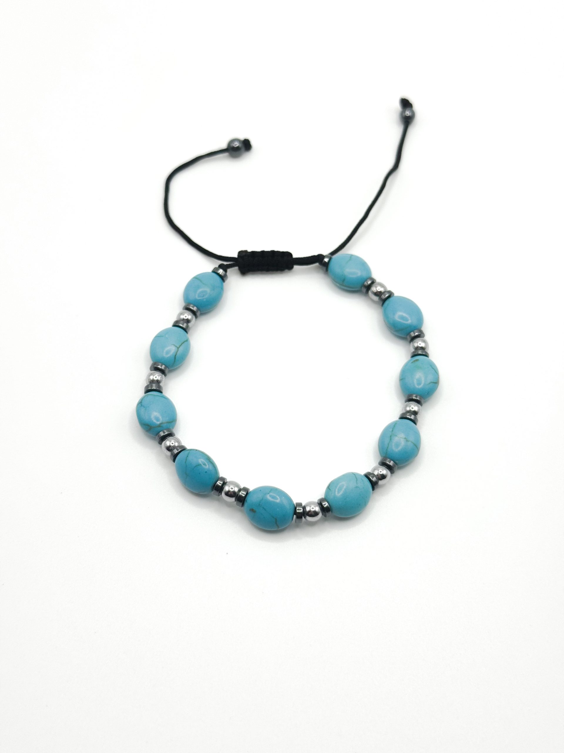 Boho Turquoise Gemstone Bracelet with Silver Details