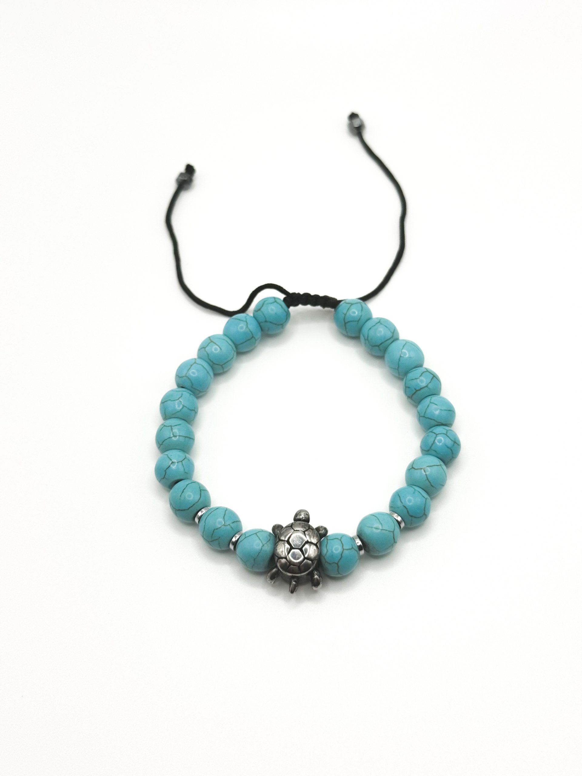 Boho Turquoise Gemstone Bracelet with Turtle Accent