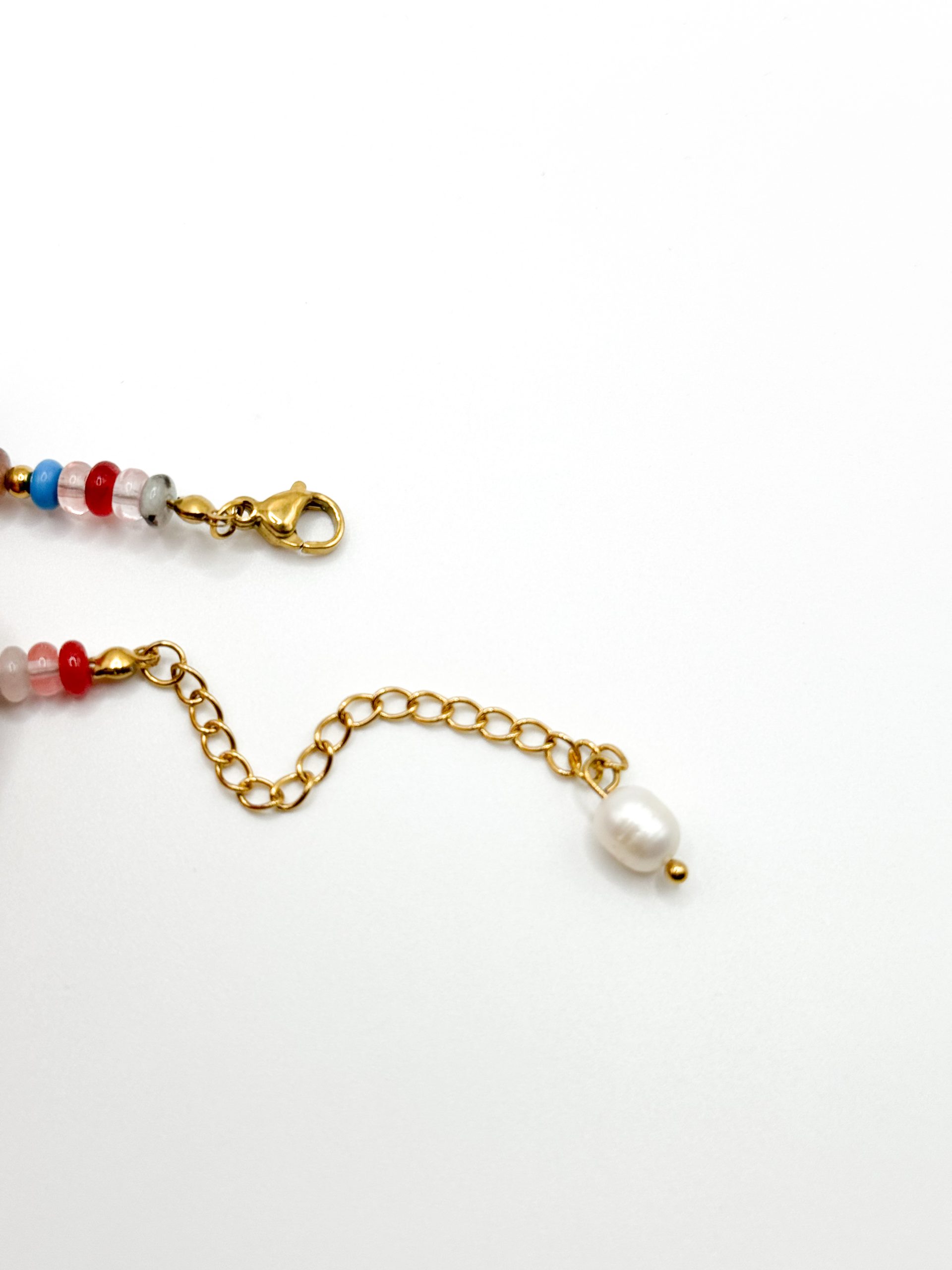 Αυτή η πολύχρωμη μακριά αλυσίδα αποτελείται από μικρά πολύχρωμα χάντρες και μεγάλα λευκά μαργαριτάρια. Ιδανική για να προσθέσεις μια παιχνιδιάρικη και ζωηρή πινελιά στο στυλ σου. Τέλειο κομμάτι για casual εμφανίσεις και για να αναδείξεις την προσωπικότητά σου με στυλ και χρώμα