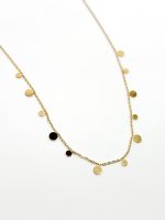 Minimal αλλά εντυπωσιακό, αυτό το κολιέ με χρυσούς δίσκους προσφέρει κομψότητα με κάθε κίνηση. Οι δίσκοι αιχμαλωτίζουν το φως, δημιουργώντας ένα λαμπερό, ηλιόλουστο εφέ.