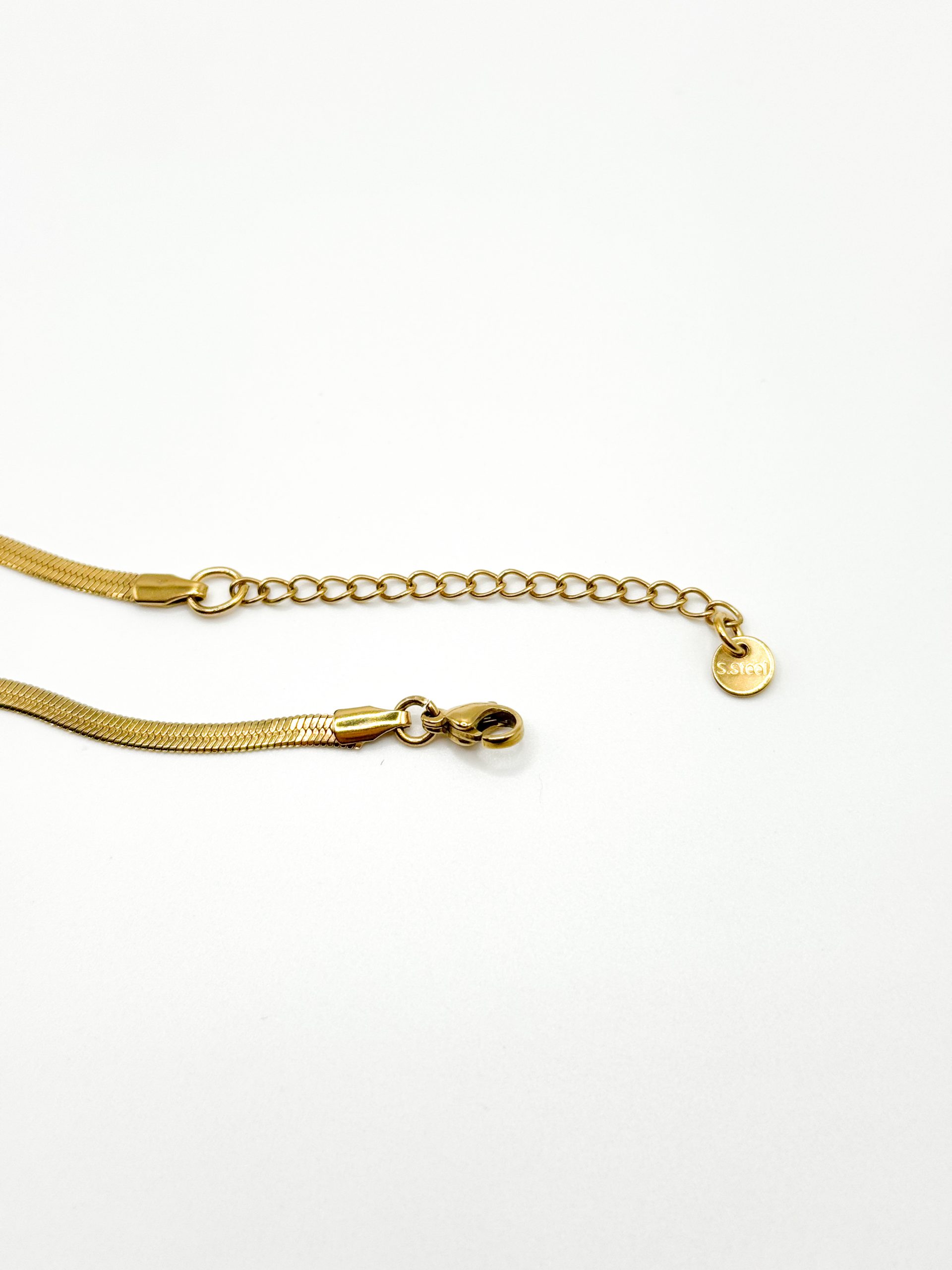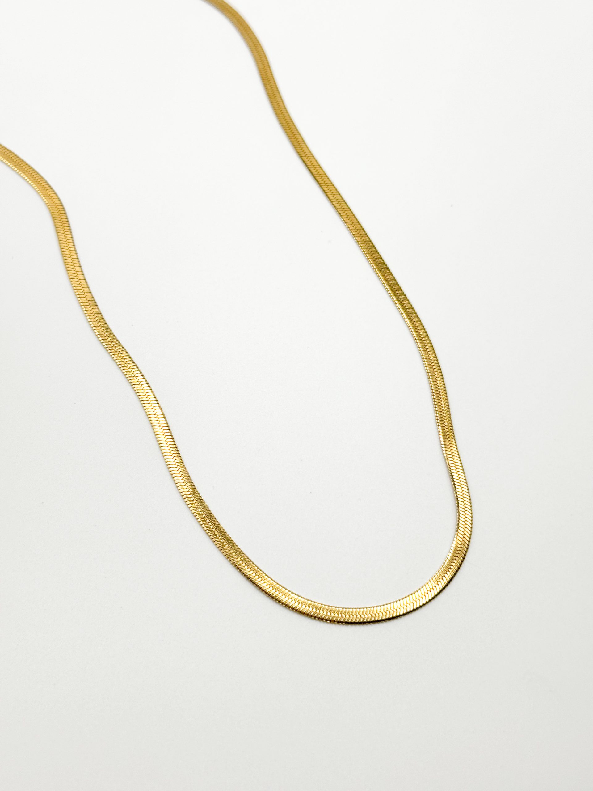 Gold flat snake bone chain necklace