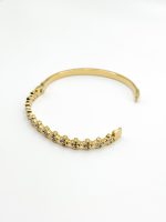 Εντυπωσιακό χρυσό bangle βραχιόλι διακοσμημένο με διαδοχικά λουλούδια, στολισμένα με λαμπερά, διάφανα ζιρκόνια. Ένα κομψό και θηλυκό κόσμημα που δίνει διακριτική λάμψη σε κάθε εμφάνιση. Ιδανική επιλογή για καθημερινό στιλ αλλά και για πιο επίσημες περιστάσεις.