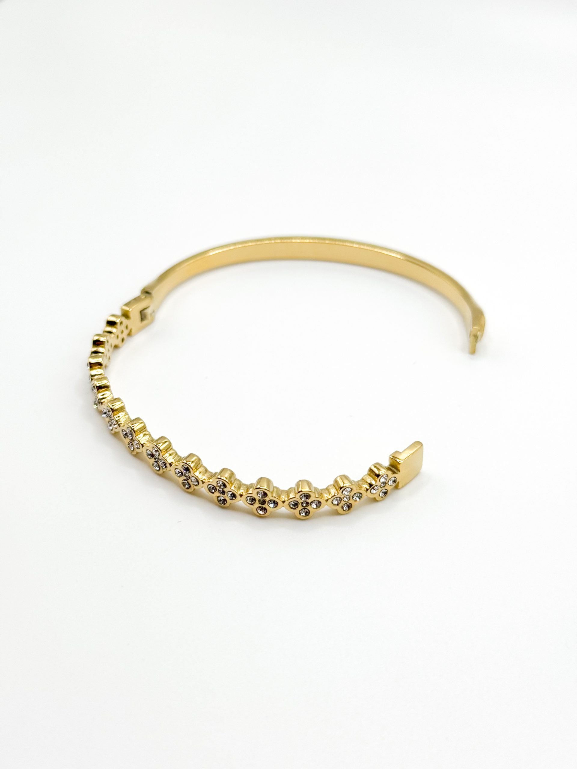 Gold floral bangle with clear zircons