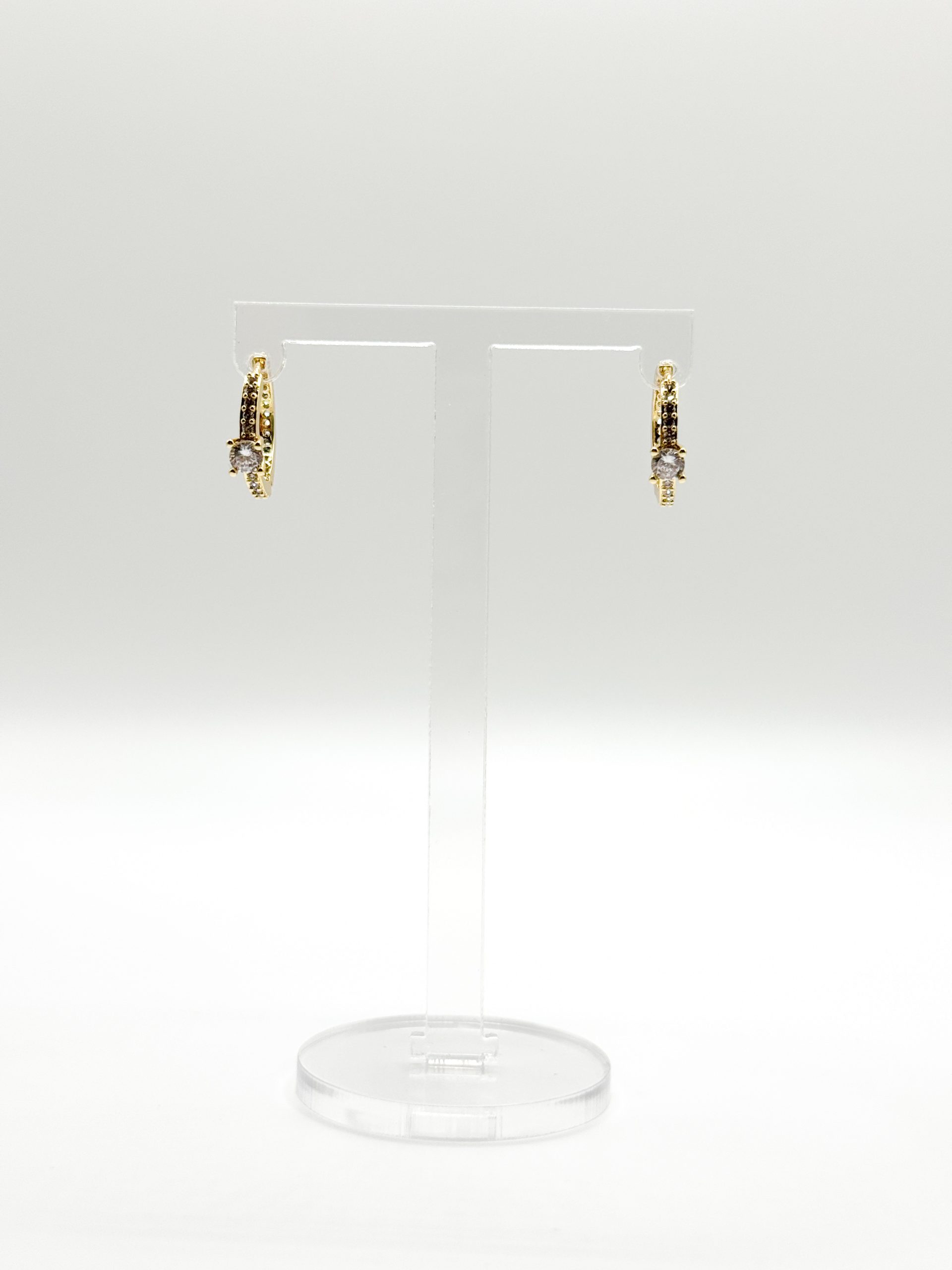 Χρυσοί κρίκοι από ανοξείδωτο ατσάλι, διακοσμημένοι με διάφανα ζιργκόν που προσθέτουν κομψότητα και διακριτική λάμψη. Ελαφριοί και άνετοι στην εφαρμογή, αποτελούν μια elegant επιλογή για κάθε ημέρα, ενώ συνδυάζονται εύκολα τόσο με casual όσο και με πιο βραδινά looks. Ιδανικοί για όσες αγαπούν τα διακριτικά αλλά λαμπερά κοσμήματα.