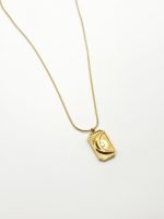 Εντυπωσιακό χρυσό κολιέ με μενταγιόν φεγγαριού σε ορθογώνιο πλαίσιο με ανάγλυφες λεπτομέρειες. Ένα κόσμημα που συνδυάζει μυστικισμό και κομψότητα, ιδανικό για να αναδείξει κάθε σας εμφάνιση μέρα και νύχτα.
