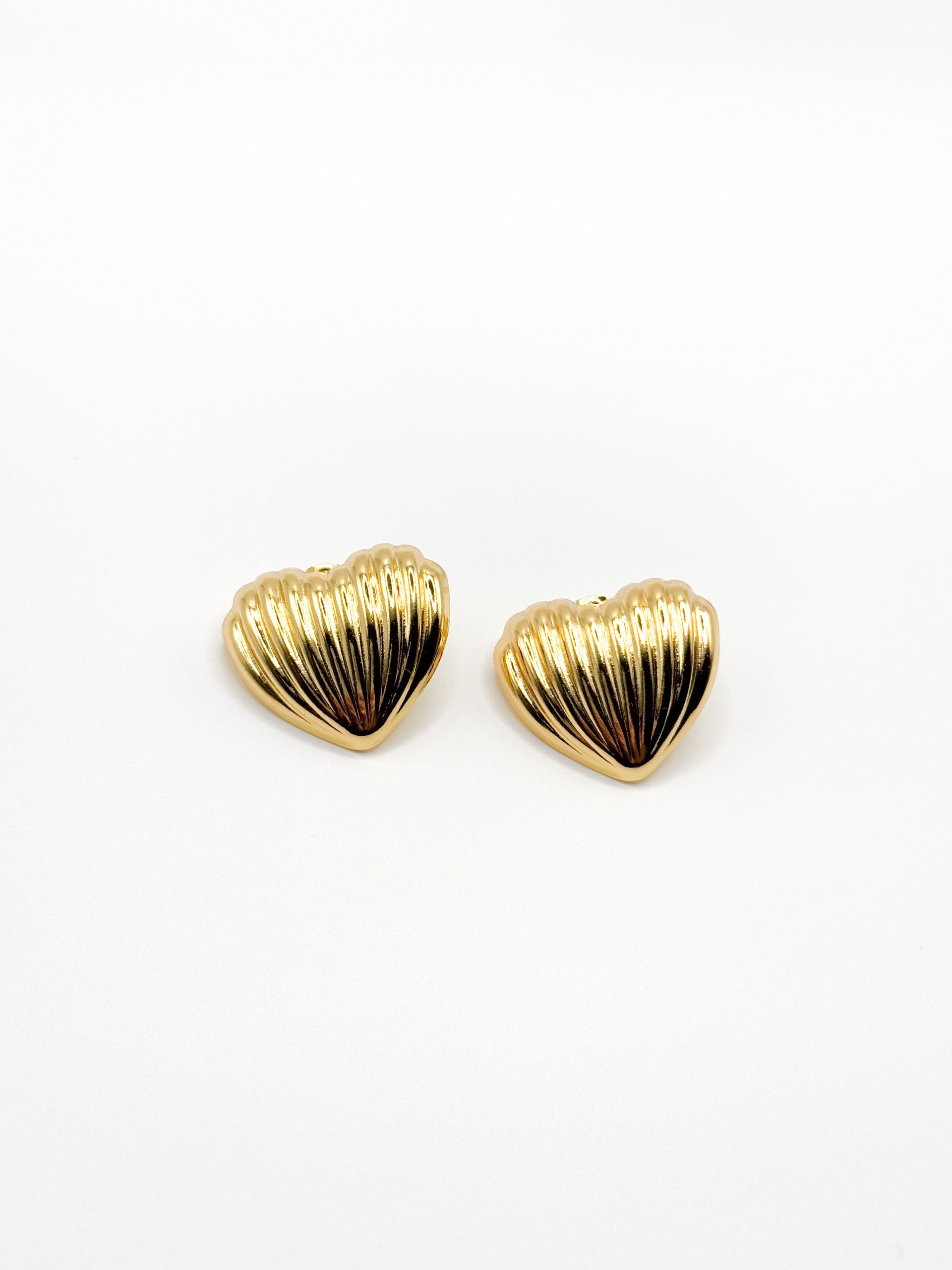 Gold ribbed heart stud earrings