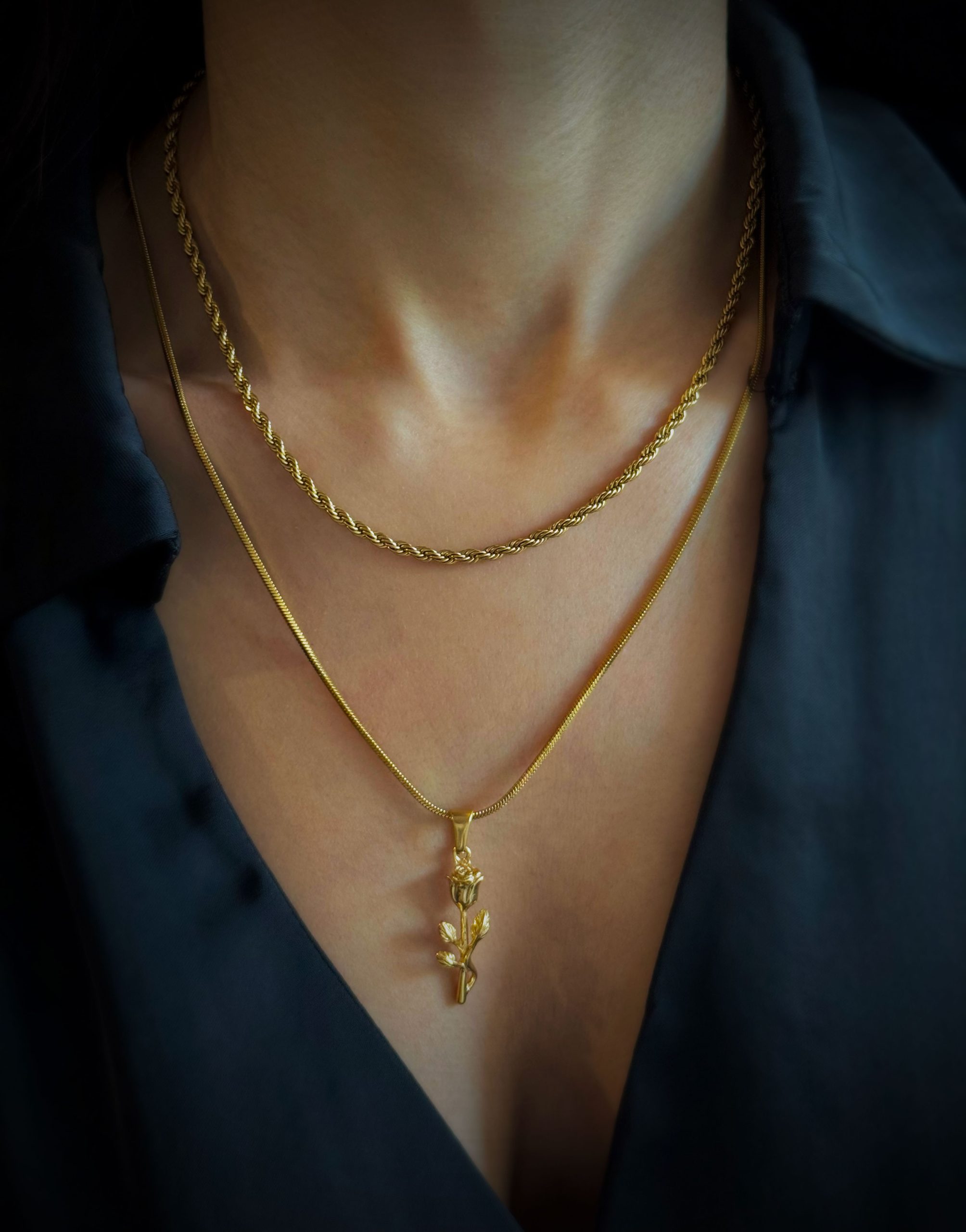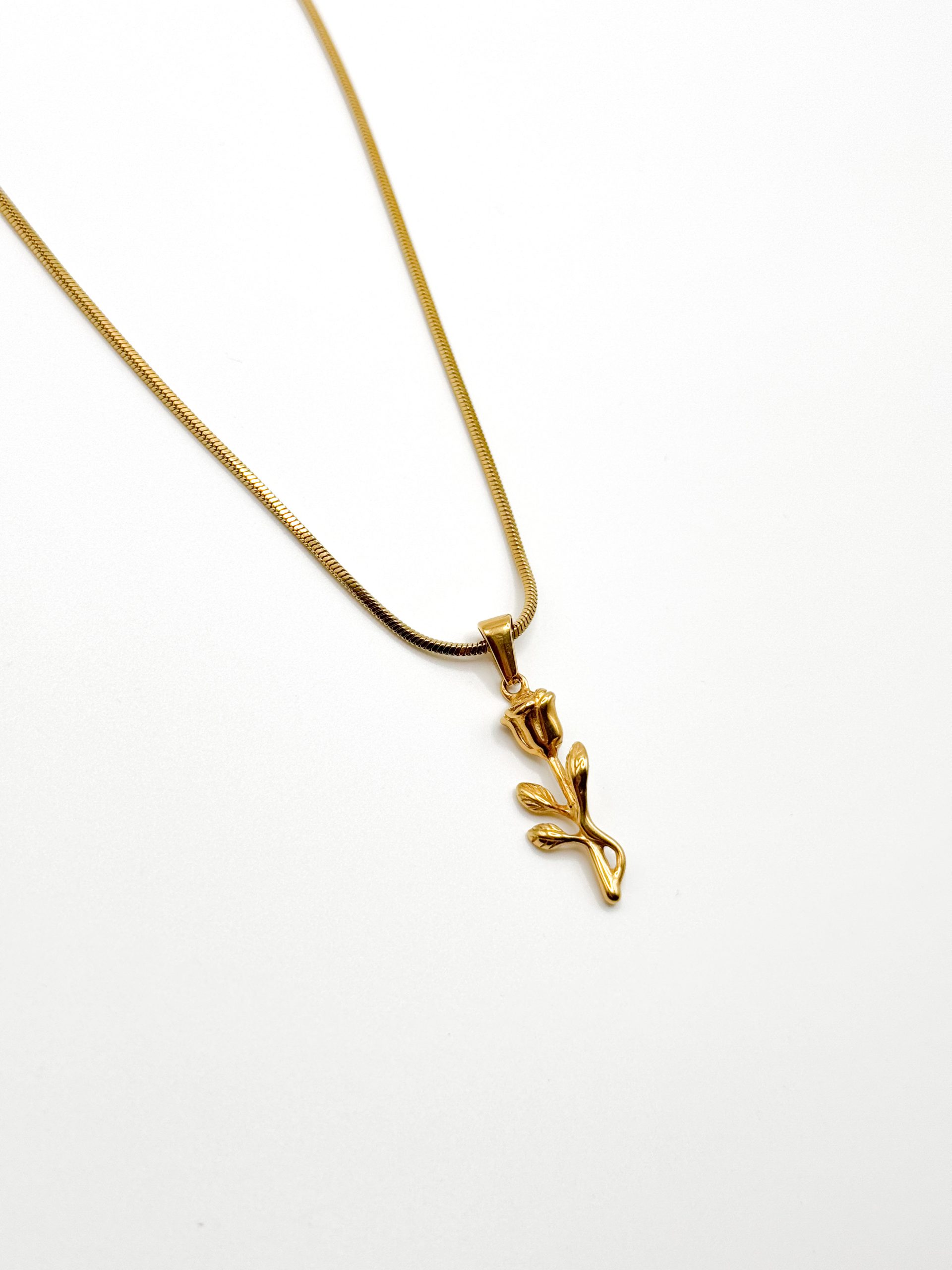 Gold rose flower pendant necklace