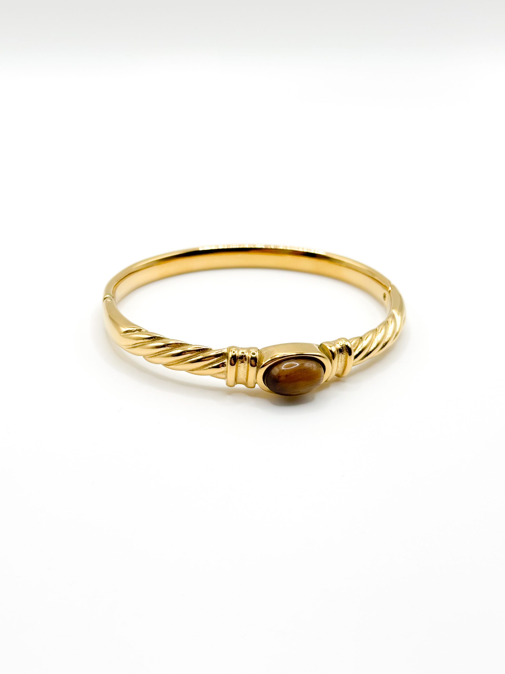 Gold twisted cuff with tiger eye