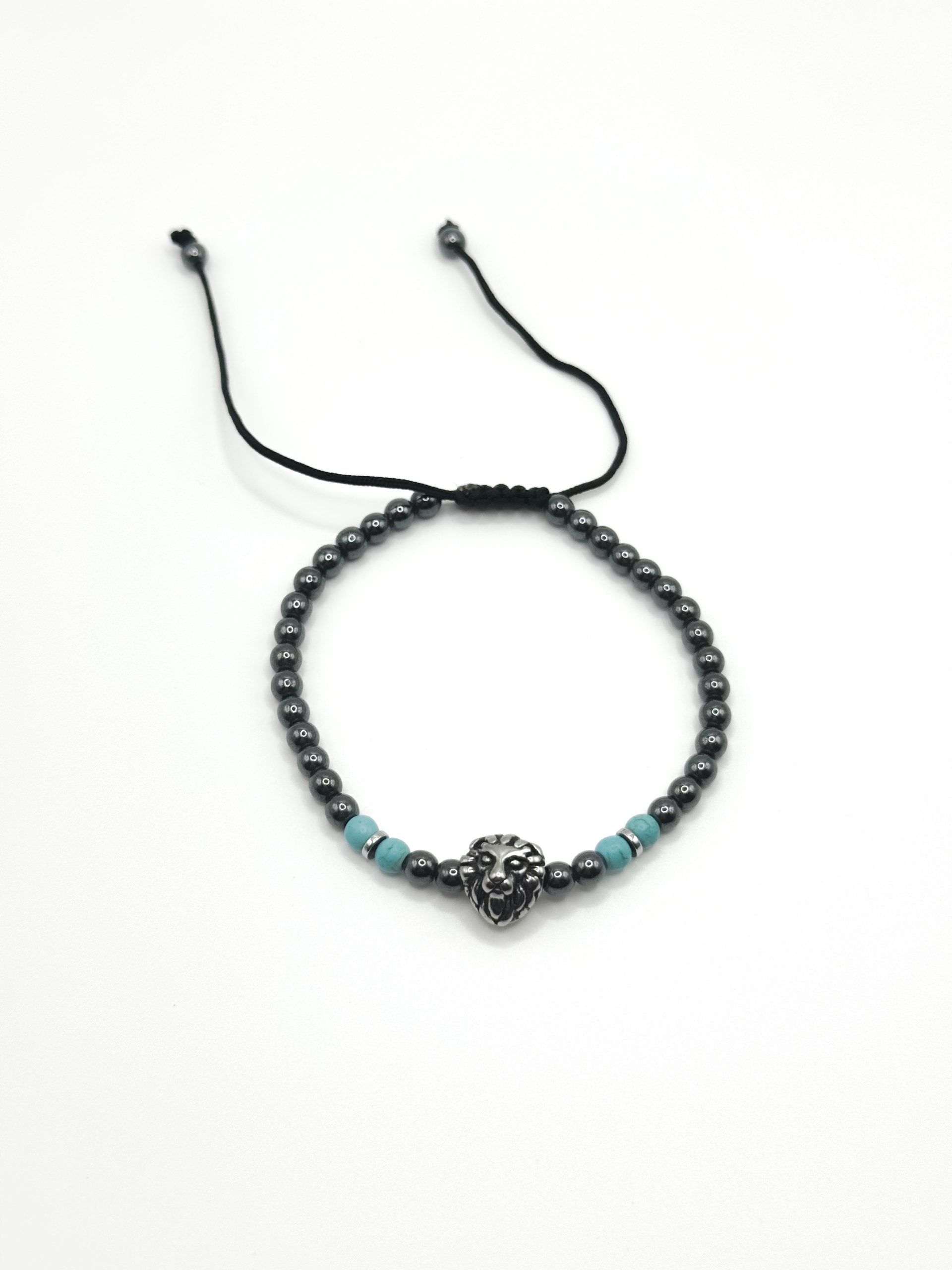 Lion Head Hematite & Turquoise Beaded Bracelet
