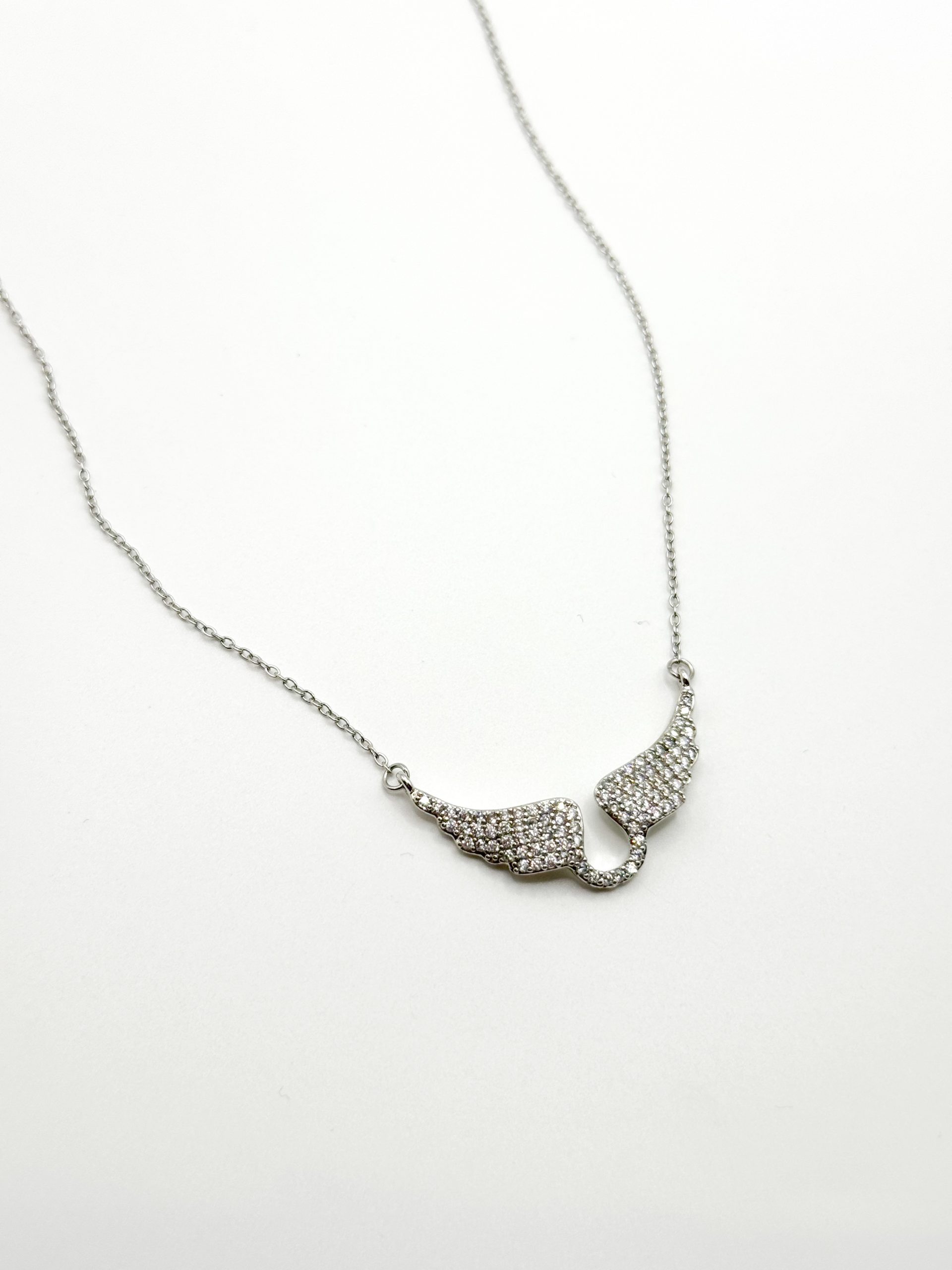 Κομψό κολιέ με φτερά αγγέλου, διακοσμημένο με λαμπερά λευκά ζιργκόν για extra λάμψη και θηλυκότητα. Ένα σύμβολο προστασίας και θετικής ενέργειας, ιδανικό για καθημερινή χρήση ή ως δώρο με νόημα. Η λεπτή αλυσίδα το κάνει ελαφρύ και άνετο, ενώ ο minimal σχεδιασμός του ταιριάζει τέλεια με κάθε outfit. Ένα διαχρονικό κόσμημα που φωτίζει το λαιμό και ολοκληρώνει κάθε εμφάνιση.