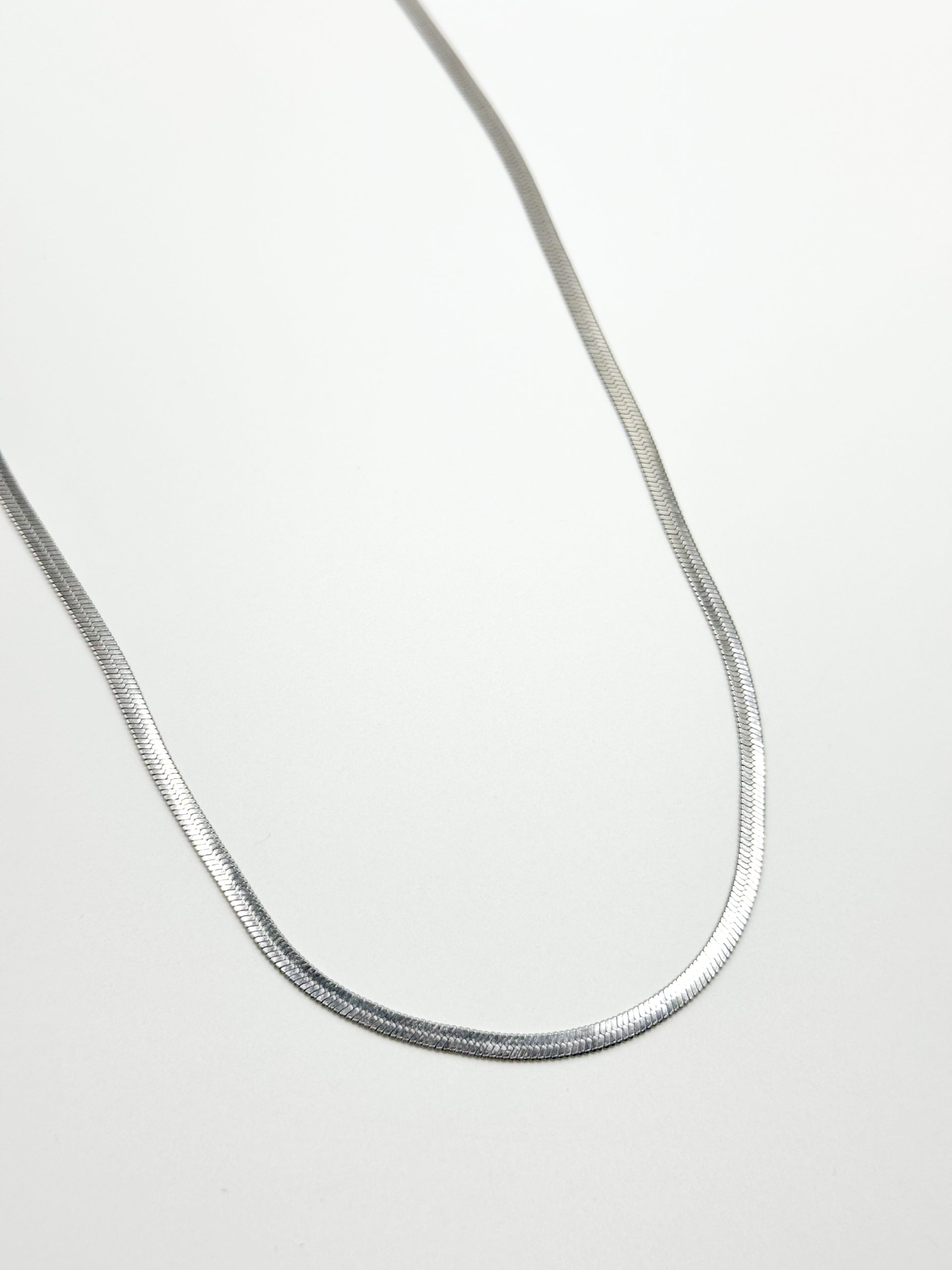 Λιτή αλλά εντυπωσιακή, η flat snake bone αλυσίδα σε ασημί απόχρωση χαρίζει μοντέρνα κομψότητα και shine σε κάθε εμφάνιση. Ιδανική για να φορεθεί μόνη της ή να συνδυαστεί με άλλα κολιέ για layered looks, αποτελεί το τέλειο everyday κόσμημα.