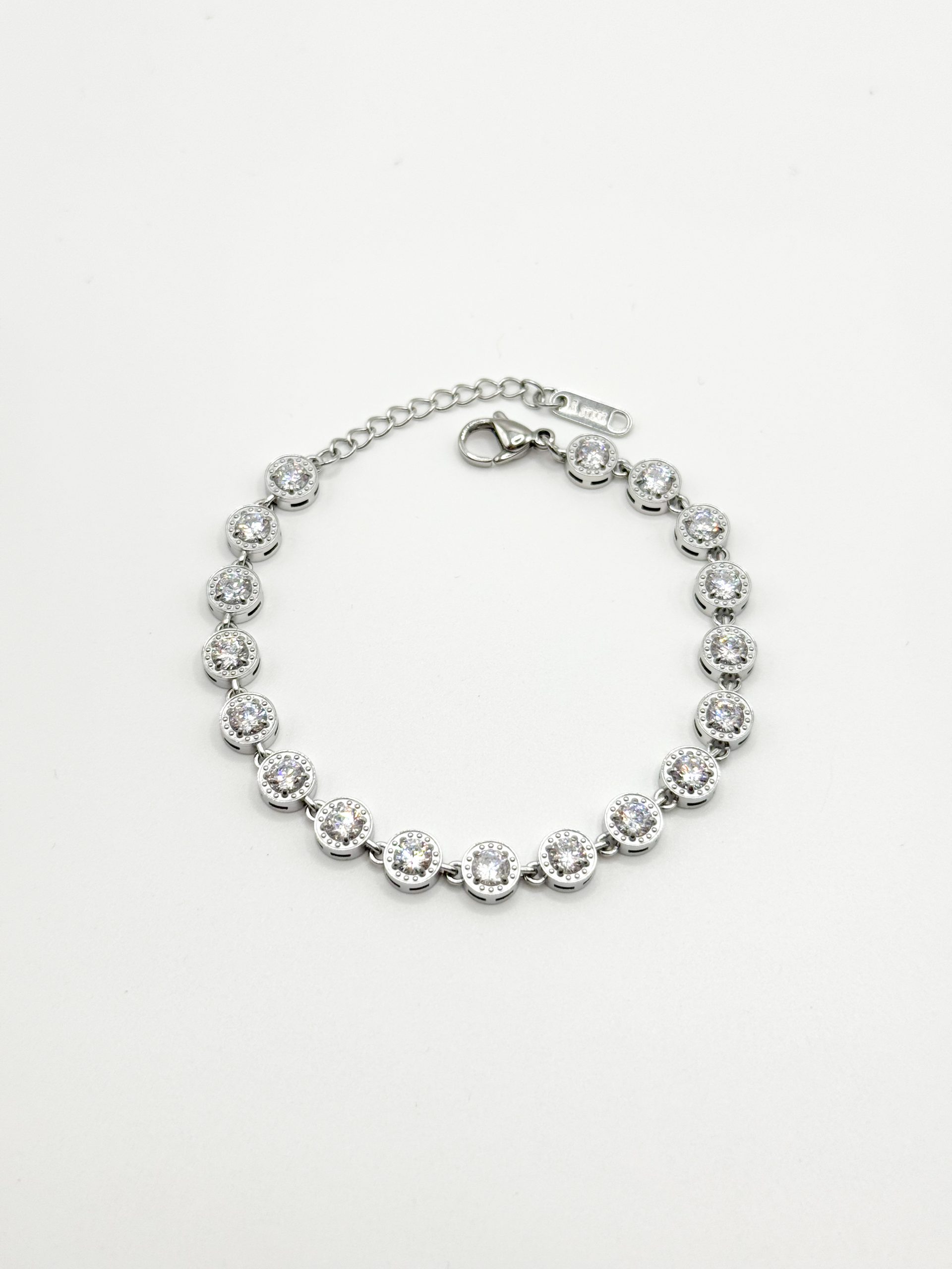 Κομψό βραχιόλι με στρογγυλούς κρυστάλλους, που προσφέρει διακριτική λάμψη και εκλεπτυσμένο στυλ. Ιδανικό για καθημερινή χρήση αλλά και για πιο elegant εμφανίσεις, συνδυάζεται εύκολα με άλλα κοσμήματα και ολοκληρώνει κάθε look με μια πινελιά πολυτέλειας.