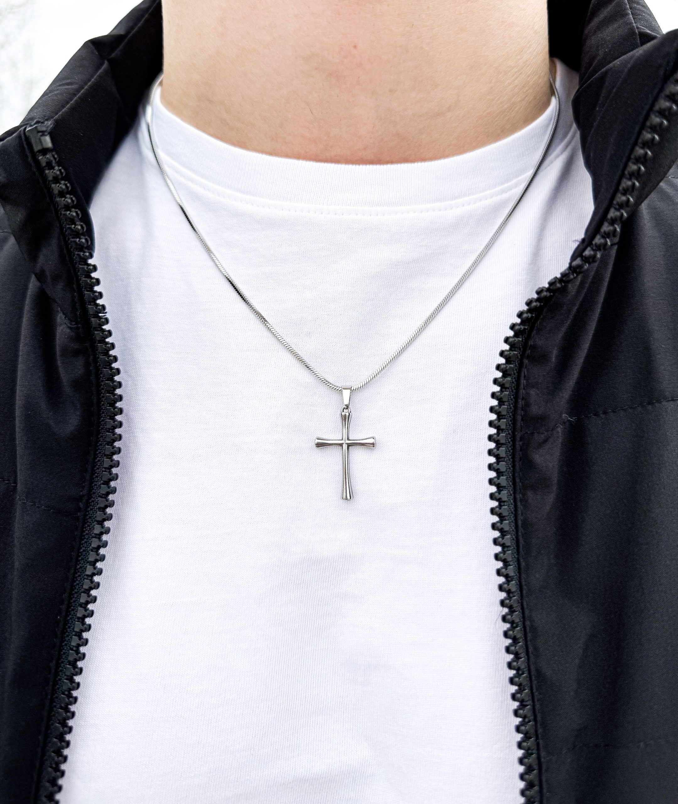 Silver bold cross pendant necklace