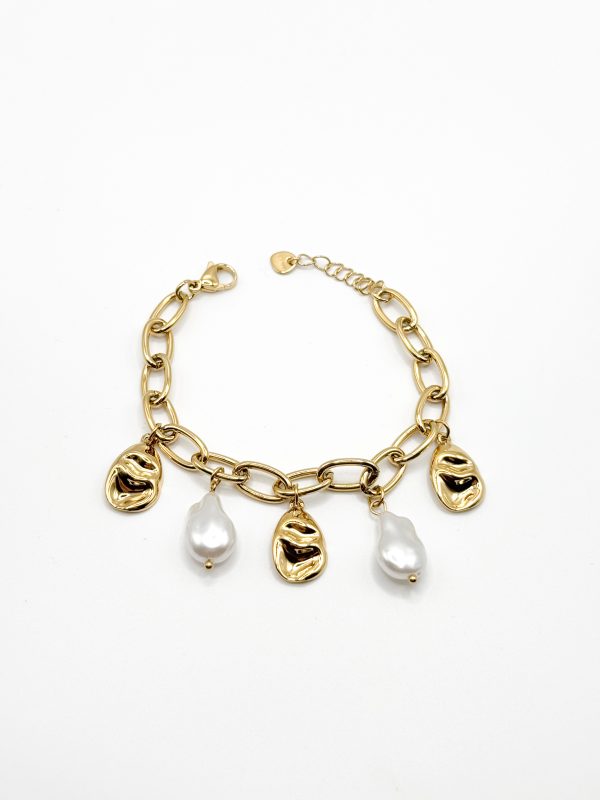 Gold pearl fluid pebbles bracelet